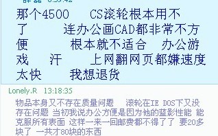 本人卖了个微软蓝影4500 货到了 东西拿到了 却收到一条这样的回复 本人原帖在这 大家评评理 http://www.pcwaishe.cn/thread-101783-1-1.html 多余的话我不想说 用着不舒 ...
