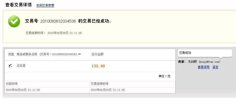 到帐 132 元,卖家可以发货。 为保证效率,请买家在付款后务必以短信息形式通知我。 标题与内容中对成色表述不一,提醒买卖双方核对。 中介版主 发表于 2010-9-8 22:17