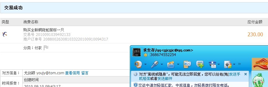 | 版主GG说话了我当然接受了,看卖家态度了,我要下星期5才能上线了。 |