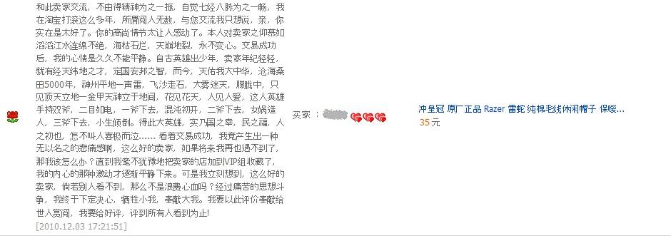 在tb的一家外设店的评价中看到的,很有周星星的味道。(为了人家隐私,所以涂去了id)