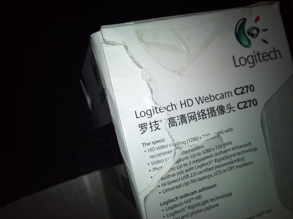 悲剧啊...买了个罗技C270 720P摄像头!! 结果盒子有个地方烂了.... 因为签收的那天我正好有点事,就叫别人签了.. 心想,商城的东西包装应该会很好!!叫别人签也无所谓, 结果就是盒子悲剧死了~~~ 还好 ...