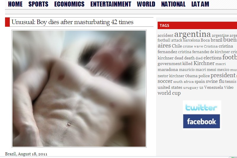 A 16-year-old boy died after masturbating 42 times without stopping in Rubiato town, in Goiás region, Brazil. 一个16岁的男孩在42次连续的撸管后挂掉了在Goiás region, Brazil. 悲剧········· ...