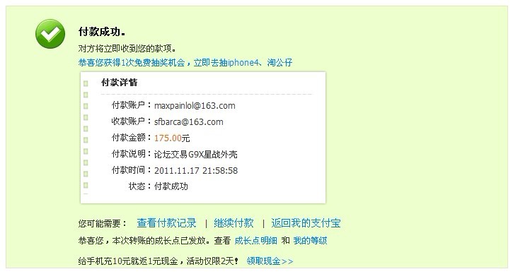 本帖最后由 中介版主 于 2011-11-20 19:10 编辑 卖家 :爱遥遥 买家 : 中出帝 交易物品:G9X星战自定义外壳一个 成色:基本全新,图上有点点 帖子链接:http://www.pcwaishe.cn/thread-206975-1-1.html ...