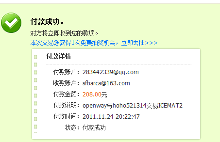 本帖最后由 中介版主 于 2011-11-29 20:56 编辑 卖家:hoho521314 买家:openway 交易物品:蓝色ICEMAT2,卖家仅使用过几次,定义95新,背面有个小瑕疵已经告诉买家,买家接受 价格: 208元包ems 原帖:http: ...