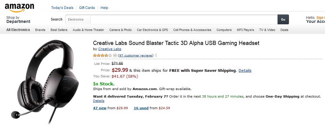 Creative Sound Blaster Tactic3D Alpha 亚马逊特价29.99刀