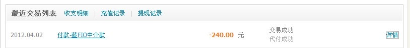已经放款 ! 交易的双方可以去申请诚信分。 地址:http://www.pcwaishe.cn/forum-46-1.html 付款成功,转账到银行卡申请已提交,正在处理。 如果银行信息填写错误资金将自动退回您的付款账户(银行卡或支付宝账户)。 付款成功 2012-04-07 10:59 提交到银行处理 2012-04-07 11:00 银行处理完成,转账成功 2012-04-08 24:00 前到账 转账详情 到账银行信息: 周学涛 中国银行 (**** **** **** 9216) 黑龙江省 牡丹江市 到账金额: 239.10 元 服务费: 0.90 元 备注: 转账 付款时间: 2012/04/07 10:59 到账时间: 2012/04/08 24:00 前 付款人: 户滔 (sfbarca@163.com) 继续转账 | 查询转账记录 | 提点建议 | 返回我的支付宝 恭喜您,本次转账的成长点已发放。查看成长点明细和我的等级 |