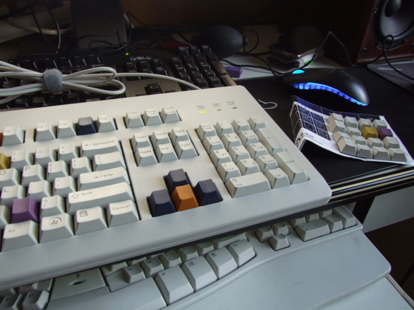 本帖最后由 zhysun 于 2009-6-22 21:44 编辑 ququ上了有刻的妖艳版彩冒。。偶上几个和朴素的白青配合的低调无刻版。。 我入了4种颜色的无刻各4个来搭配,但是第一排的键帽,也就是最高的那种。所以主键区只能 ...