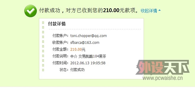 本帖最后由 中介版主 于 2012-6-16 05:53 PM 编辑 买家:tweetycx 卖家:ufo021 交易凯酷104黑色茶轴键盘,SHIFT ALT CTRL Z A键变暗,背面有个划痕,210包x通。 原帖地址:http://www.pcwaishe.cn/thread-402 ...
