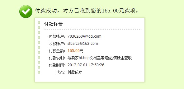 本帖最后由 中介版主 于 2012-7-8 02:38 PM 编辑 卖家:hishop 买家:Bloody 交易物品:巫毒蝰蛇 成色:洋垃圾 无使用问题 交易金额:165包邮 交易帖连接: http://www.pcwaishe.cn/thread-407552-1-1.html ...