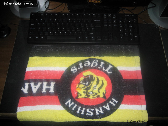 自从用了Filco后才知道为什么需要键盘手托,现在自己弄了个.多功能一体的键盘手托一个.可以防止底盘渗水,还可以擦拭手上的油质,不用时还能防尘.呵呵,这个手托是看棒球时买的.希望大家喜欢.
