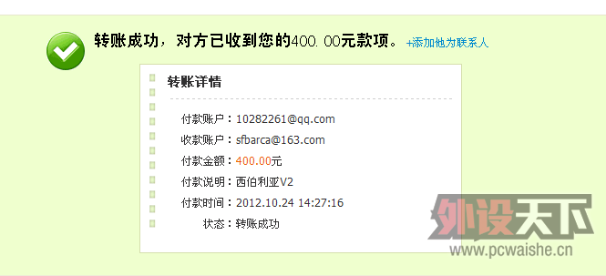 本帖最后由 中介版主 于 2012-10-30 04:32 PM 编辑 买家:装B可耻 卖家:DOyOU 物品:西伯利亚V2 金额:400