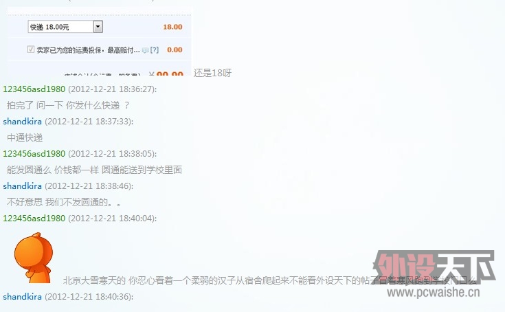 caiweidong 发表于 2012-12-21 06:58 PM +几块钱让老板发顺丰啊=.=