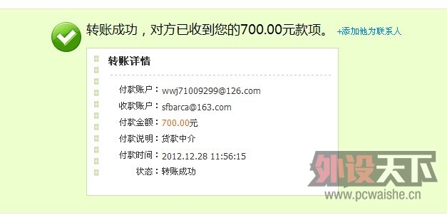 已经放款 ! 交易的双方可以去申请诚信分。 地址:http://www.pcwaishe.cn/forum-46-1.html |