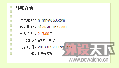 中介版主 发表于 2013-3-21 10:13 已经如数到账,卖家可以发货。...