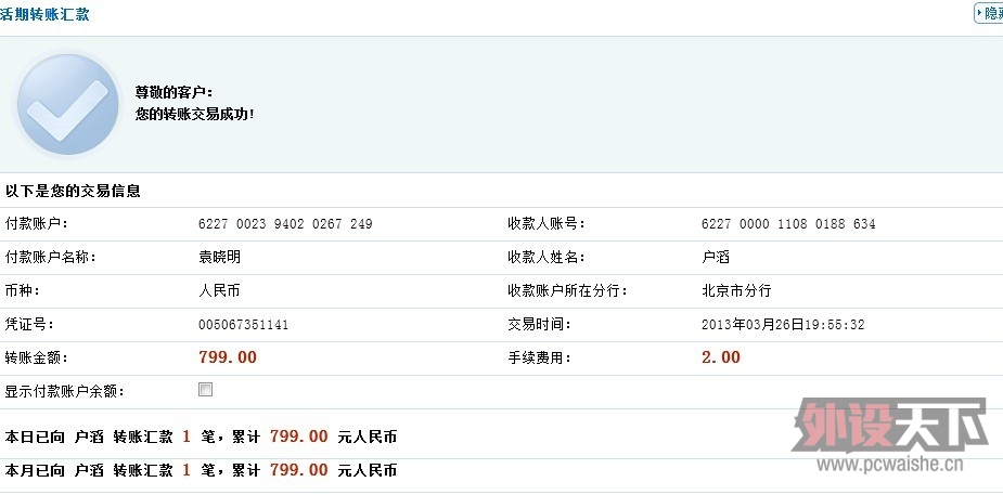 中介版主 发表于 2013-3-27 11:49 已经如数到账,卖家可以发货。