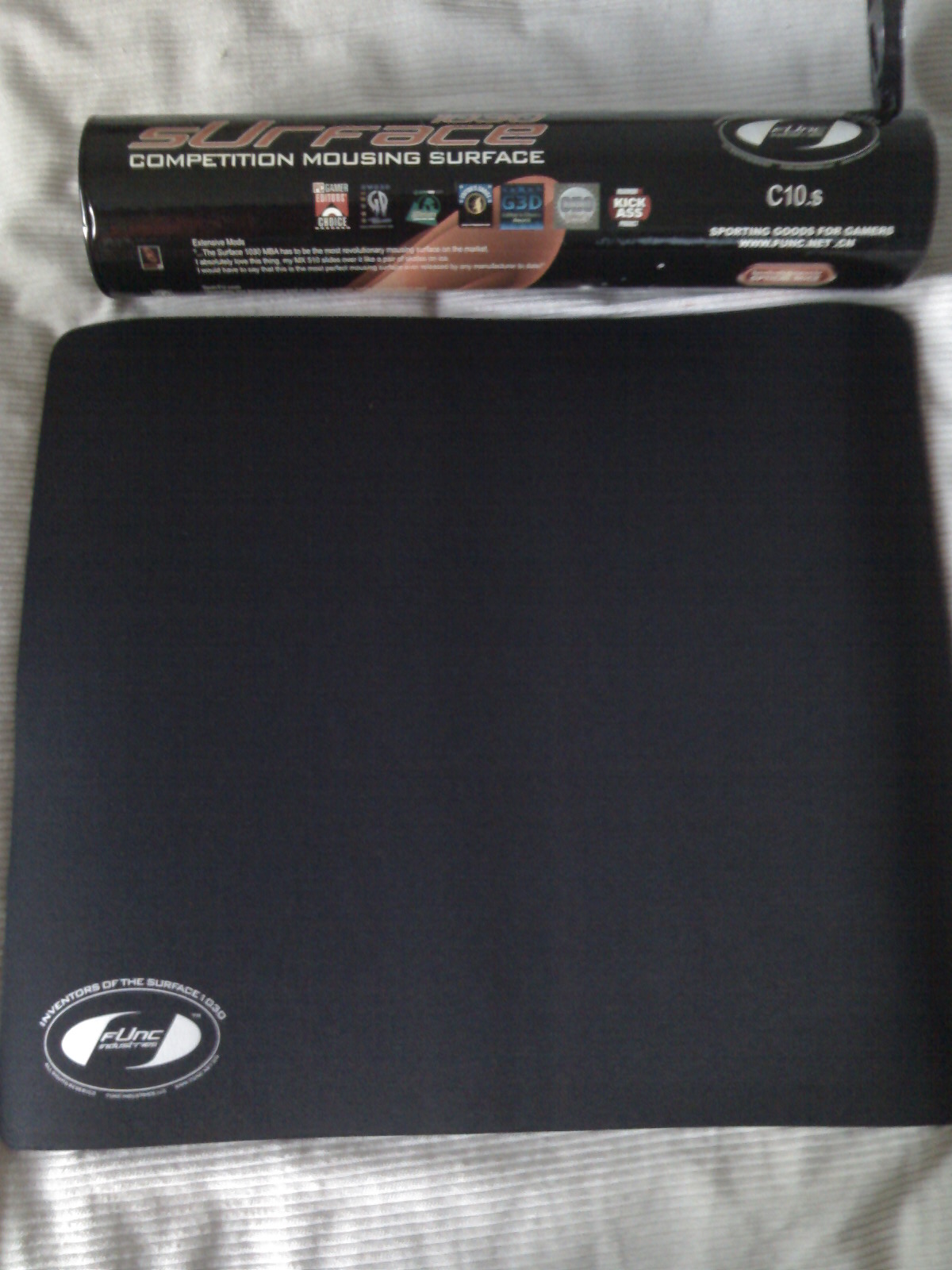 我也入了块 想把它弄平 只有一个办法 反过来卷 放到筒子里面 一个月 呵呵 我就是这么弄平的 我感觉表明不是很滑 手腕在上面磨久了 会有些红 没有螳螂速度舒服 但是手腕比螳螂操控要舒服 白乌鸦 发表于 2009-9-28 21:58