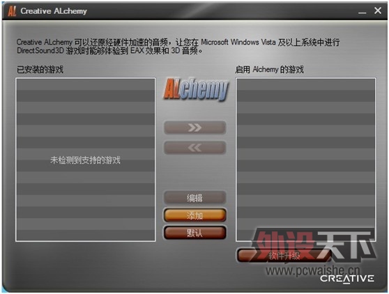 一直玩声卡的朋友可能会知道,Creative Alchemy是个传奇般的辅助驱动,支持多种创新声卡,一度其还是收费驱动,也更令许多玩家对它趋之若鹜,就如它传奇般的名字一样,Alchemy(炼金术)。直到最近入了Audigy4二 ...