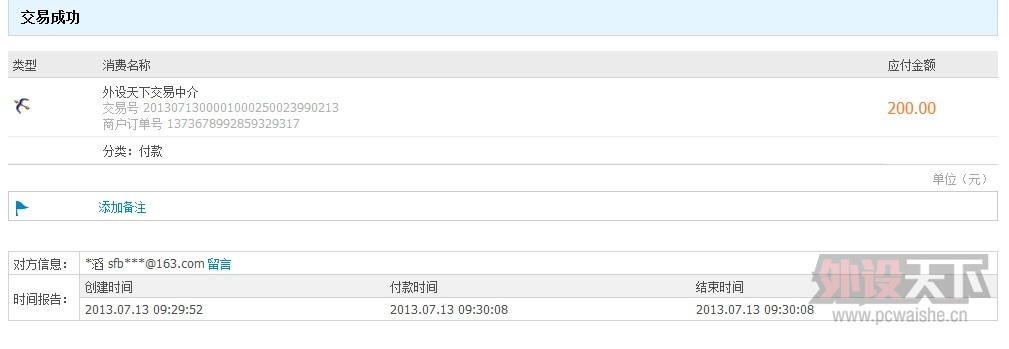 中介版主 发表于 2013-7-15 10:11 已经如数到账,卖家可以发货。