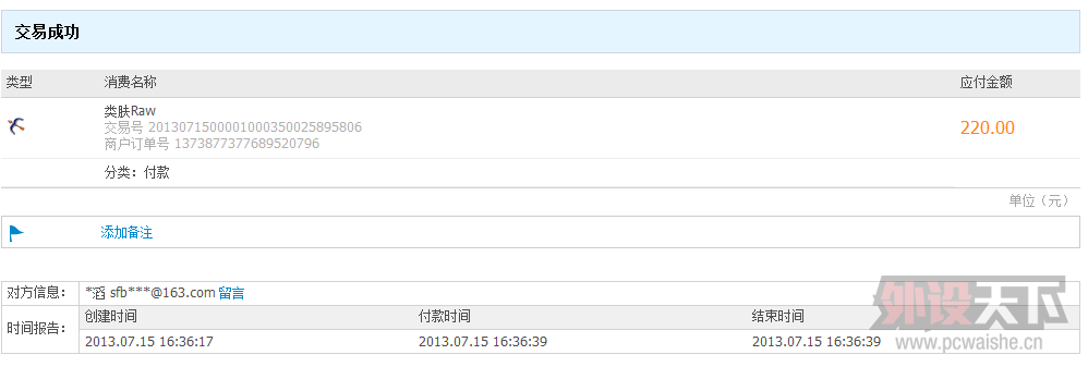 已经放款 ! 交易的双方可以去申请诚信分。 地址:http://www.pcwaishe.cn/forum-46-1.html |