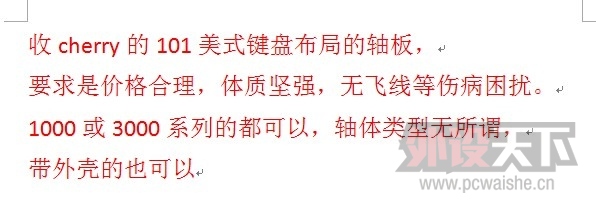 收块cherry的101美式键盘布局的轴板,要求是价格合理,体质坚强,无飞线等伤病困扰。 1000或3000系列的都可以,轴体类型无所谓,带外壳的也可以