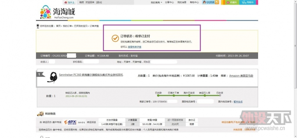 今天来信息告诉我需要交税金,工作人员还把我的税单和别人的弄混了,我需要交233.99元的税金,后来一问客服才知道是他们录入错误但还是得交120元的税金, 运气太不好了. 海淘需要好运气 , 时间太长了已经20多天了.