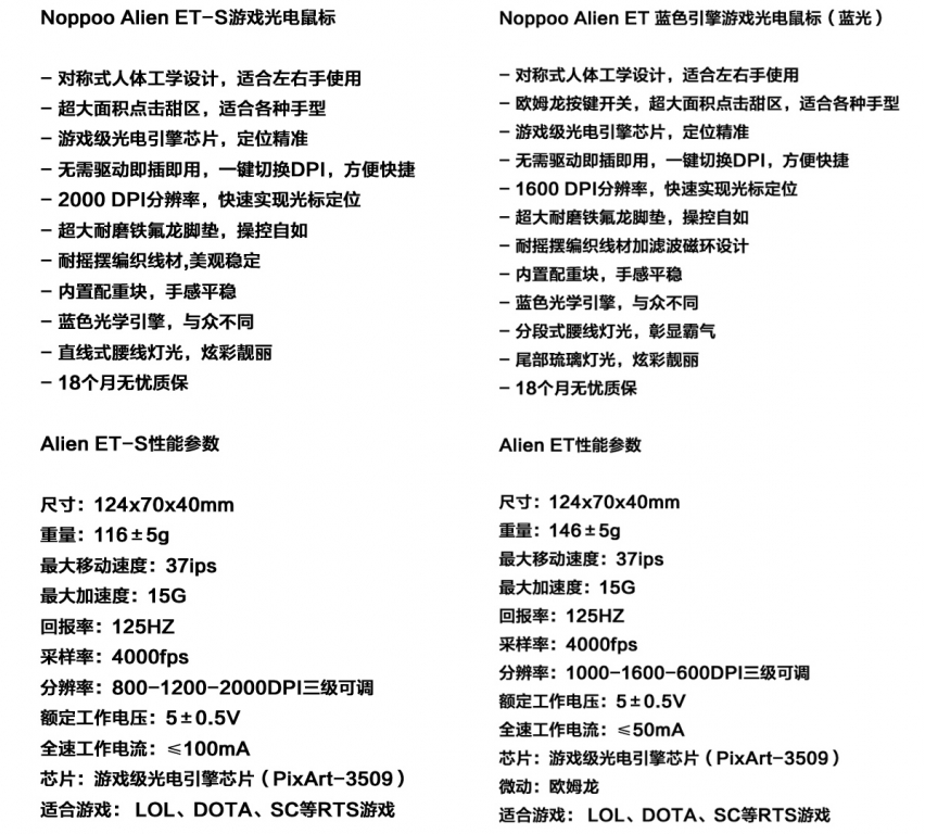 本帖最后由 伽蓝雨落 于 2014-5-27 17:41 编辑 NOPPOO全新的入门级鼠标Alien ET S游戏鼠标,在原ET鼠标上采用简化灯光及内部措施打造的入门级光电游戏鼠标。上盖采用与ET完全相同的类肤质手感外壳,LOGO变为发光 ...