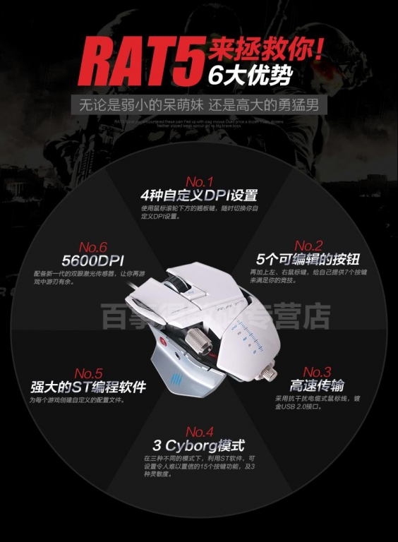 物品名称:Mad Catz R.A.T.5 双眼激光游戏鼠标 开始时间:2014年11月10日 结束时间:2014年11月14日 价 格:399元 市场价:699元 前言: 百事得数码专营店利用优势的厂商资源和强大的 ...
