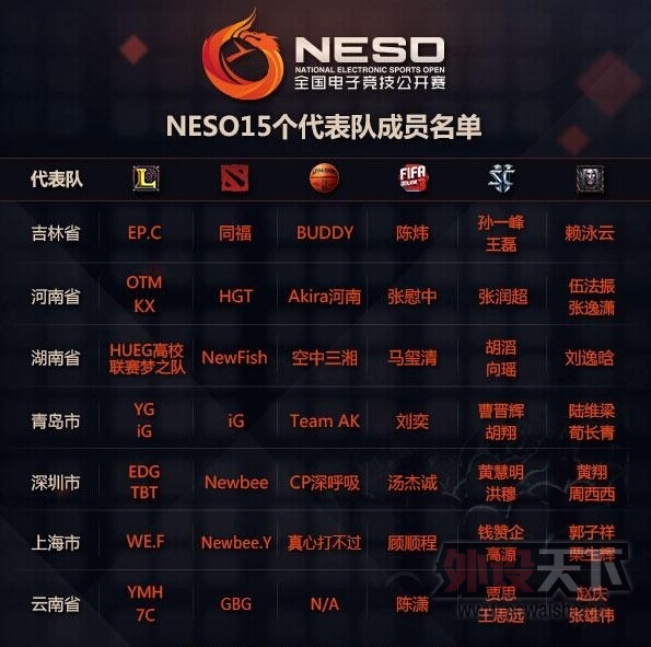 12月5日,NESO全国电子竞技公开赛即将迎来全国总决赛。组委会在全国四十多个省、市代表队中挑选出实力最强的十五个电子竞技省、市代表队晋级全国总决赛。他们分别是青岛市、上海市、深圳市、河南省、河北省、湖南省 ...