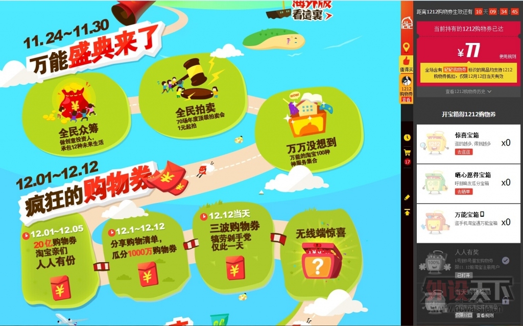 本帖最后由 nnshisgg 于 2014-12-1 14:30 编辑 几分钟前无意间发现淘宝的双十二也出炉了,有各种方法赚取双十二当天可使用的购物券,并且券的数额是累计的,但具体使用方法未知