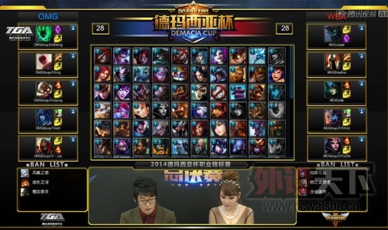 WE.A对阵OMGOMG蓝色方 WE.A紫色方OMG ban 风女、纳尔、狼人WE.A ban 辛德拉、狮子狗、卢锡安OMG选择 锤石、盲僧、飞机、丽桑卓、劫WE.A选择 大树、潘森、娜美、小炮、妖姬 38分钟OMG团灭对手拿下比赛。 本 ...