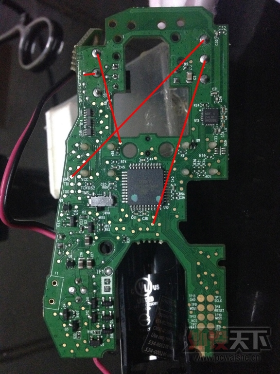 這貨左鍵兩個腳都是內層走線,真等玩脫了想找線腳順著摸點都沒得摸,只好拆了一個好的找了一下。