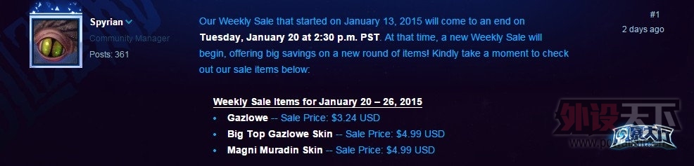 风暴大厅 洛特之剑 整理翻译,转载请注明来源。美服的每周特惠将于1月20日周二更新,本次现金半价的是加兹鲁维英雄、马戏团加兹鲁维皮肤、麦格尼·穆拉丁皮肤。 美服促销信息加兹鲁维:促销价3.24美元马戏团加 ...