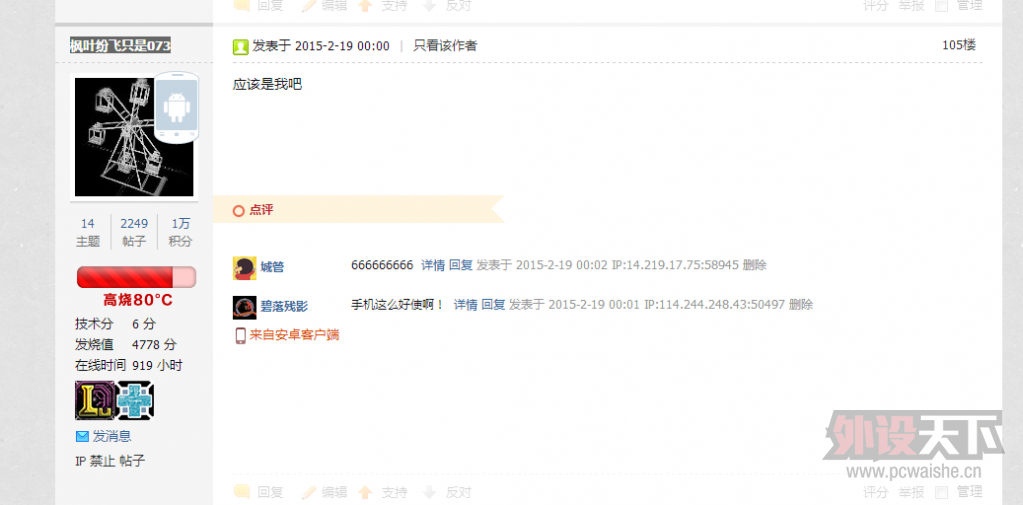 本帖最后由 lz43284 于 2015-2-23 12:12 编辑 过年了,弄一个小活动,暂定为发帖时间吧 具体规则为年三十的0:00分第一位回帖的坛友已经大年初一12:00第一位回帖的坛友(本帖内) 奖品也不弄太贵的了,年三十的 ...