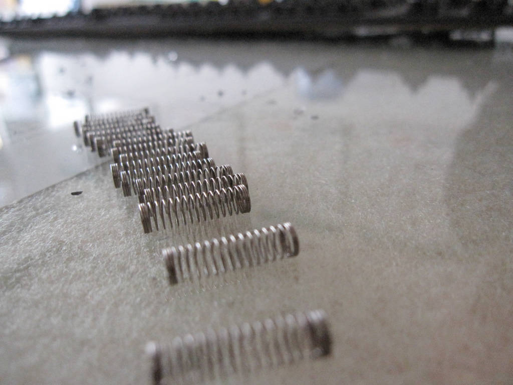 本帖最后由 jonthan 于 2010-1-2 23:52 编辑 从中午弄到现在,高兴~成功了~庆祝下,图来了 这张图右边是红轴的弹簧,左边是拆下来的黑轴弹簧,圈数明显比红轴弹簧少很多~~ 其中省略n多过程,累啊~ 手感 ...