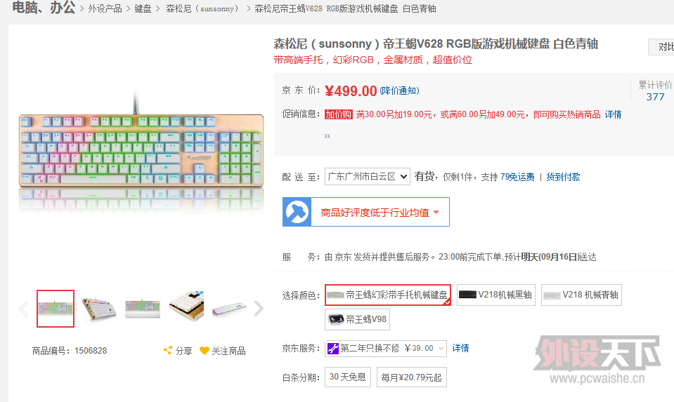 | 国产的轴,先不说好坏,同价位何必选这么杀马特的键盘,但是349价格还算过得去 |