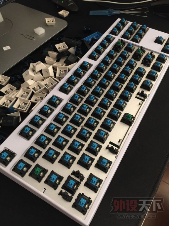 原价988的蓝牙定制版 白壳 白帽 白灯 青轴 空格回车退格混绿轴 阳极铝板。 箱说全。买就送蓝牙适配器。 买过来只用了一个礼拜… 觉得87的太大了……还是660和minila用的舒服 不接刀