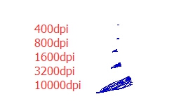 用软件试了下鼠标指针轨迹,鼠标透镜位置用不透光黑色胶布挡住。空中左右晃动鼠标。指针自动移动。DPI越高,移动范围越大