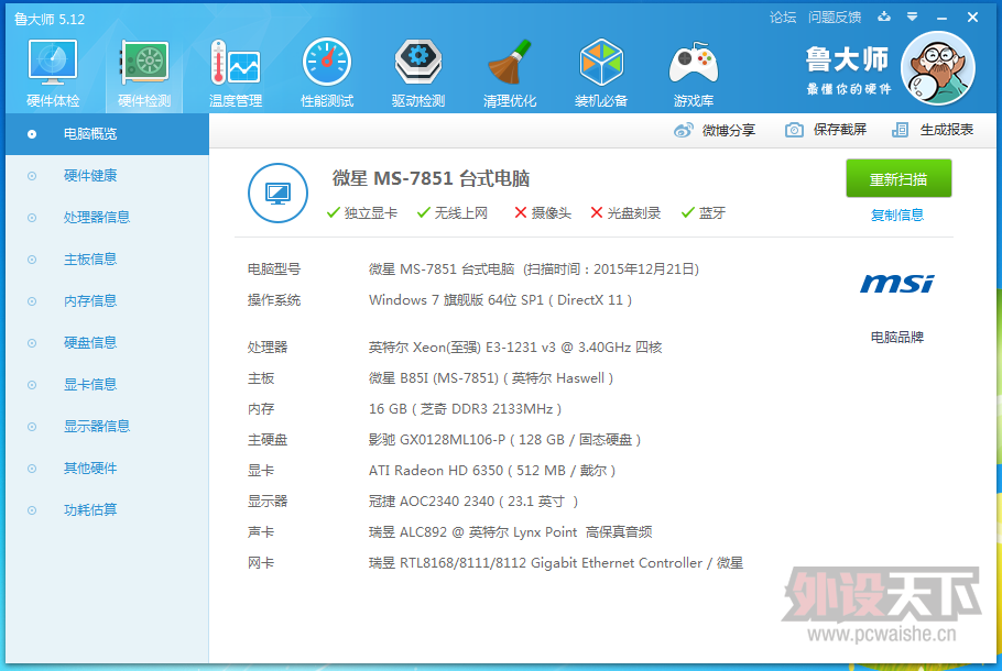 本帖最后由 zjuhxg 于 2016-2-4 00:45 编辑 配置见图,其中主板是微星B85i,自带intel 7260无线网卡;内存是芝奇8G*2 ddr3 2133Hz;显示器是AOC的23寸IPS外观无损伤,屏幕无坏点亮点,使用一切正常;电源是台达NX3 ...