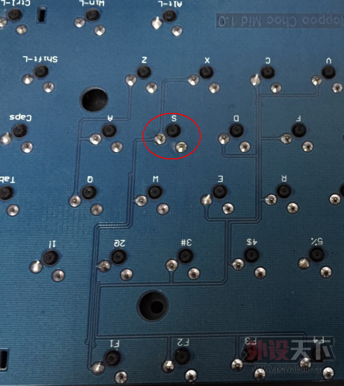 例如这个S键失灵了(轴没问题),要怎么飞线? 求高人画个图.