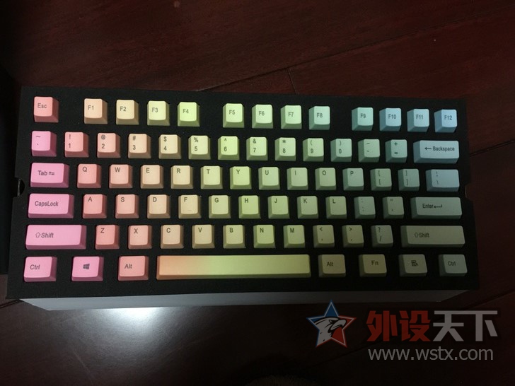 阿祖家的彩虹 上机一次 完全无打油 颜色很正很漂亮 无盒子 盒子用来装别的键帽 可小刀