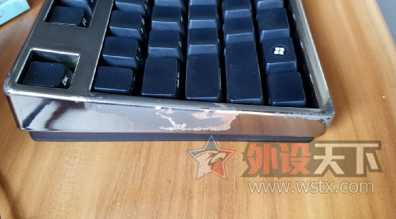 日本定制绝版 镜面 银镜款104 侧刻红轴键盘 键盘左侧电镀面破损(非人为,郁闷)。个人定义为垃圾成色 常用键轻微打油 功能完好 。