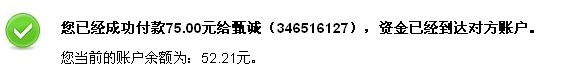 到账 75 元,卖家可以发货。