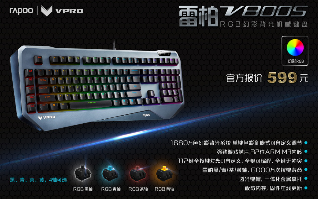 相比雷柏V800S的同价位的其他产品,我更愿意选择雷柏V800S,理由如下:一、个性造型掌托炫酷十足。二、面板军工色调彰显硬汉品质 。三、全键可编程基础上增加左侧5枚宏按键决胜一发。四、金属拔键器尽显高贵格调。五、自主轴体品控更胜一筹!![]() |