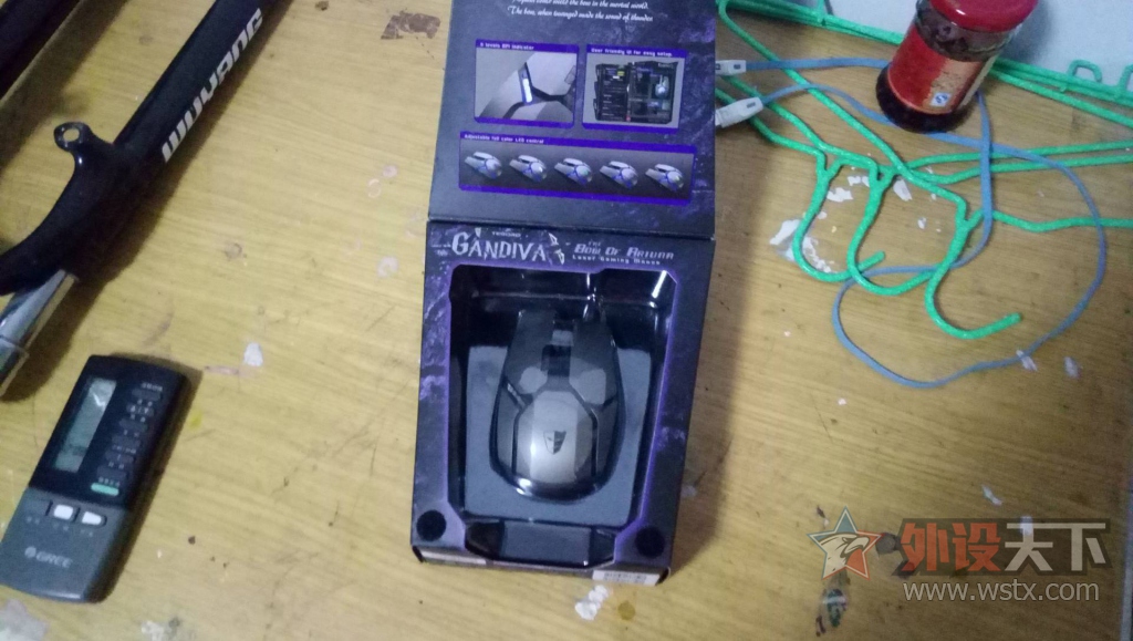 打开包装之后发现里面的东西还有好多,有鼠标上的部件,说明,还有刚帝神弓的标识,感觉好是很不错的。