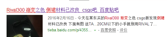csol修兵 发表于 2016-8-20 23:44 兄弟,我在咱们论坛特意发过300鼠标的帖子,特意强调过,rival300侧裙修改款,只有黑色白色灰色三款,非常 ...