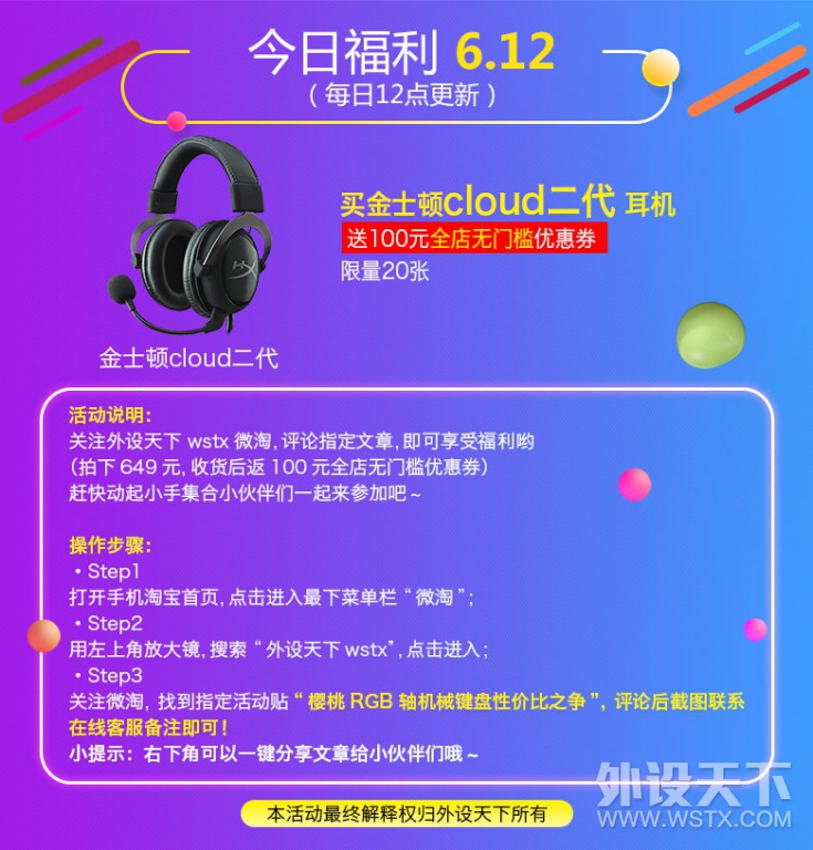 【每日福利】2017.06.12 买金士顿Cloud二代耳机 送100元优惠券