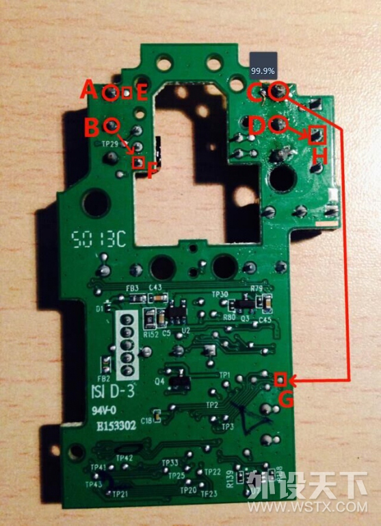 今天换了G502的左右按键,换好后,左键失灵,按着飞线哥的示意图,左键飞线修复了,但滚轮失灵,现在求左边滚轮两个焊点的飞线图,求大神帮忙了