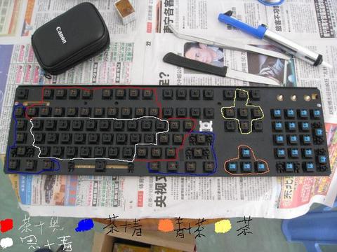 本帖最后由 curry_kok 于 2010-3-26 13:40 编辑 红色:茶体+黑弹簧 白色:黑体+青弹簧 蓝色:茶体+青弹簧 橙色:青体+茶弹簧 黄色:茶原装 没圈没点:原装未拆黑轴 数字区:青轴 好象还差点特殊轴,欢迎各 ...