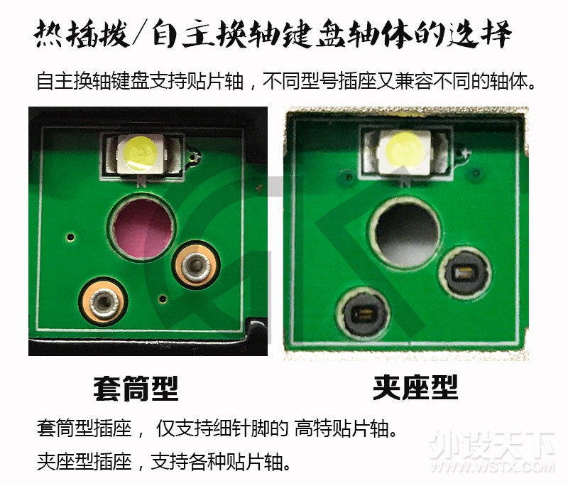 | 忆光的GK64的热插拔可以兼容樱桃,佳达隆,凯华,高特。 |