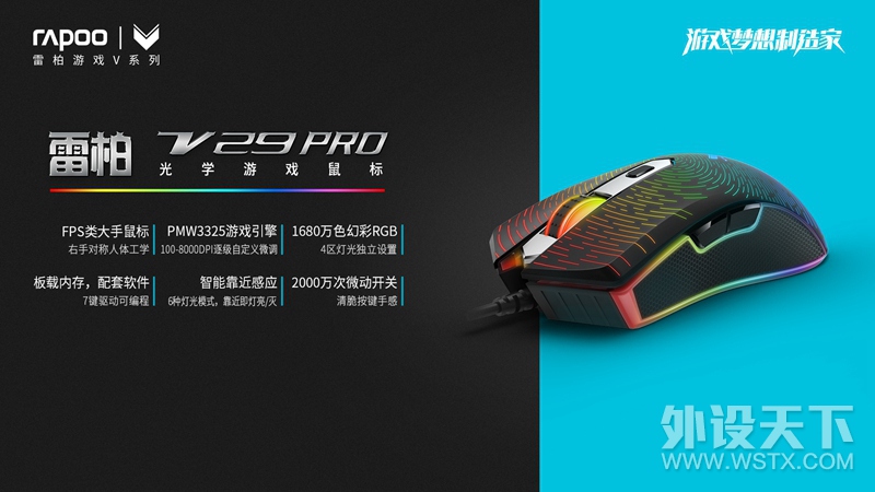 近日,老牌实力大厂,国产外设领军品牌——雷柏(RAPOO)为旗下专业游戏外设产品线V系列推出一款全“芯”的游戏鼠标—V29PRO幻彩RGB电竞游戏鼠标,新升级的强大驱动可以将原相3325的专业游戏光学引擎的强劲性能发挥 ...